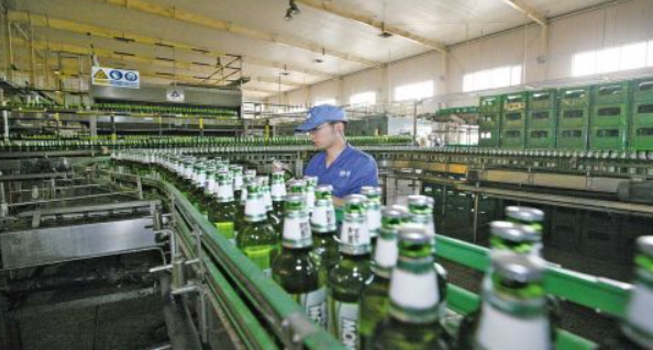 工廠從原料篩選加工到成品酒包裝采用了最先進的生產工藝管線和灌裝設備:糖化麥汁生產采用全自動微機中心控制操作,生產工藝采用全封閉隔氧式生產,麥汁煮沸采用動態低壓煮沸工藝和閃蒸工藝技術,相比其它技術能節約能源30以上。
